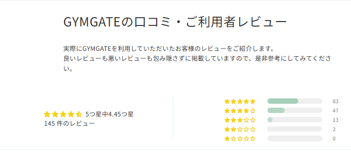 GYMGATEを利用する上での良い点・気になる点を簡潔にまとめました。