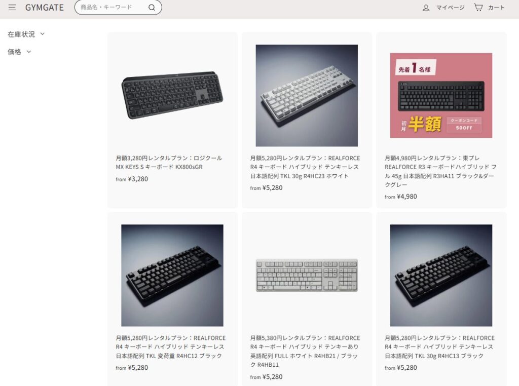 GYMGATEを利用すれば、憧れのHHKBやREALFORCEが、明日にはあなたのデスクに届きます。